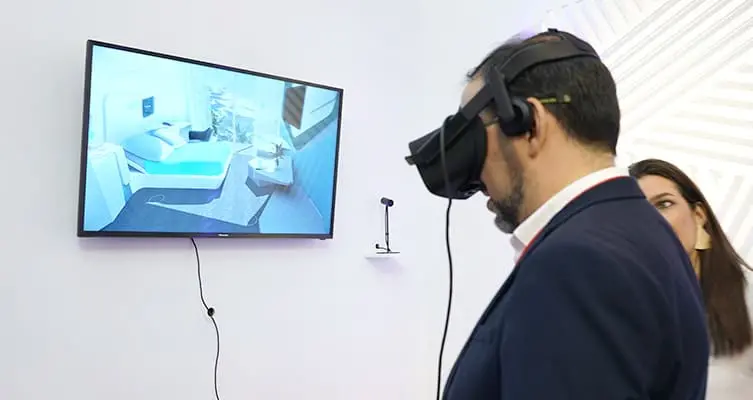 Una vez descubiertas las dimensiones del complejo gracias a la realidad aumentada, la experiencia de realidad virtual con Oculus Rift + Touch, permite andar libremente por algunas habitaciones, pasillos y recepción.