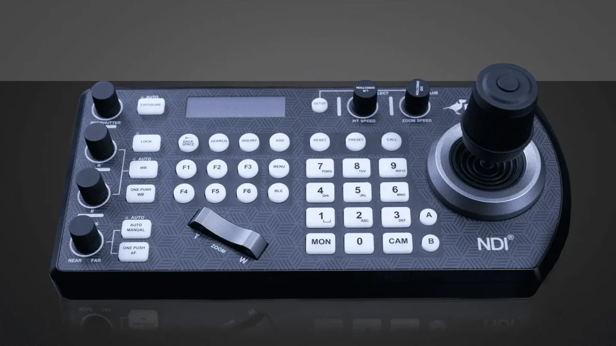 PTZ Keyboard es la primera controladora PTZ con soporte NDI y NDI|HX. También soporta Visca sobre IP, RS422 y RS232.